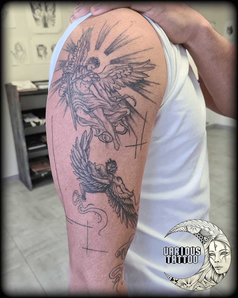 Hashtags : #TattooFrance #AngelTattoo #BlackAndGreyTattoo #FineLineTattoo #ArtTattoo #TatouageAnge #InkAddict #VariousTattoo