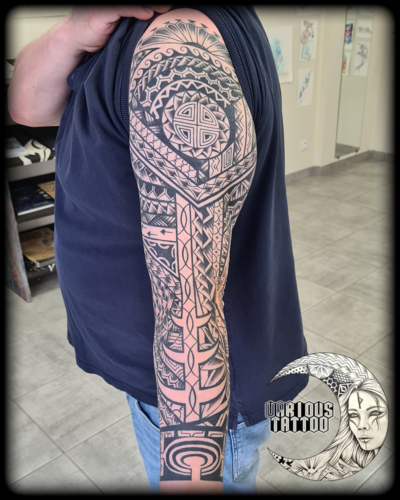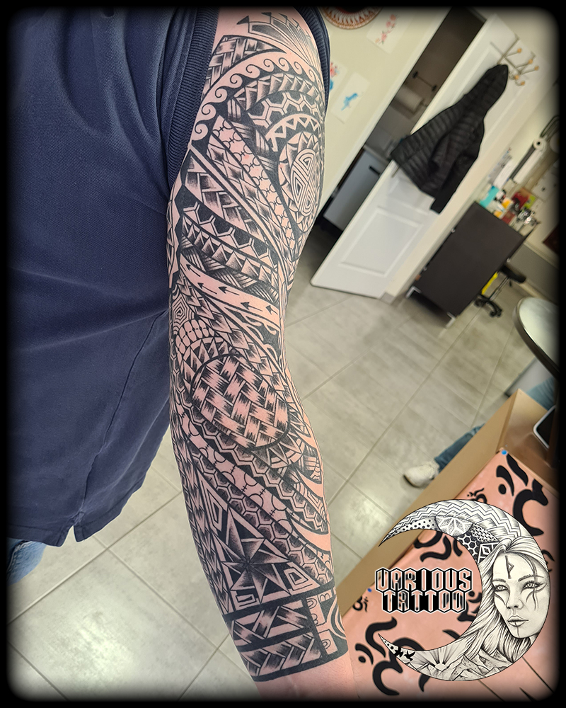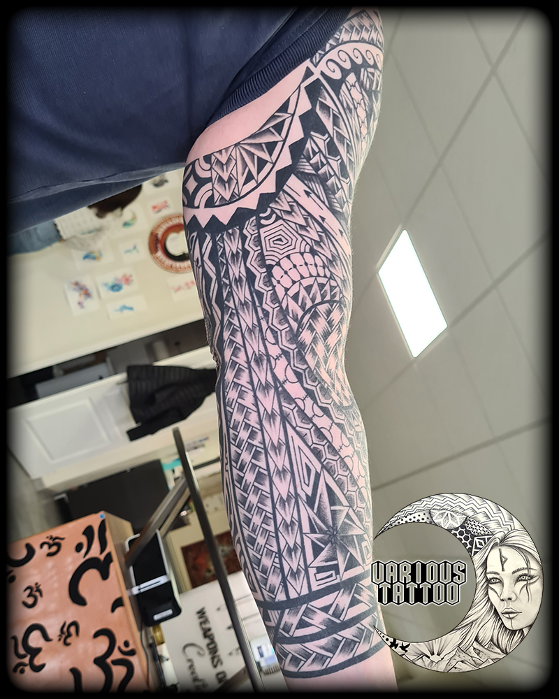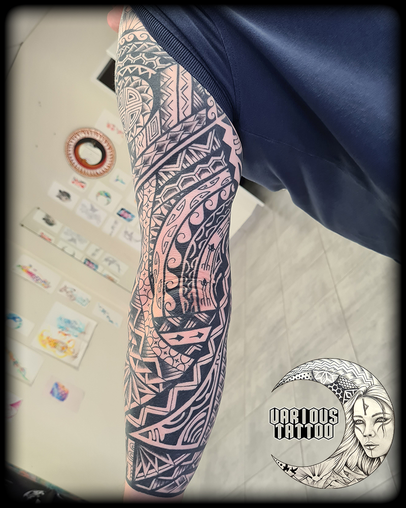 Nouveau projet massif finalisé au studio ! Un bras complet qui rend hommage à la richesse des motifs marquisiens, où chaque ligne a été pensée pour épouser l’anatomie et le mouvement naturel du corps.