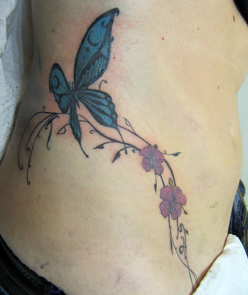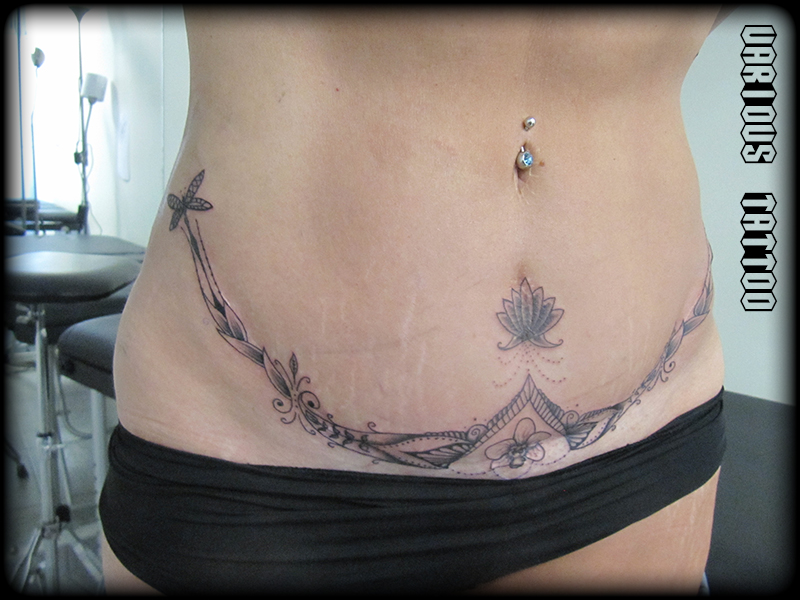 Ornemental sur abdominoplastie (tatouage cicatrisé)