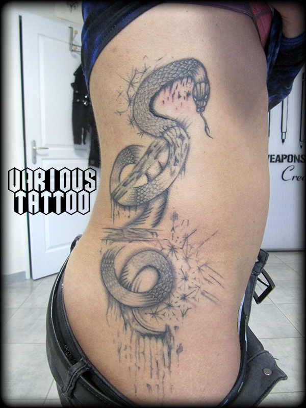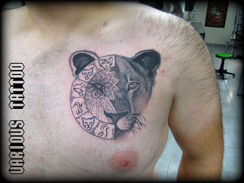 Tigre réaliste et signes astrologiques (tatouage cicatrisé)
